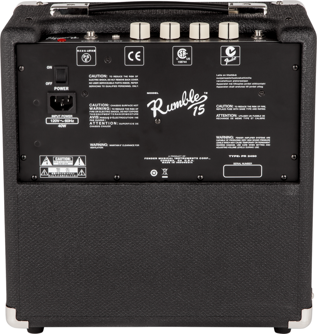 The Rumble 15 (V3) Black and Silver is a powerful yet compact bass amp delivering 15 watts of rich, balanced Fender tone. Featuring an 8" Fender Special Design speaker and a three-band EQ, it lets you shape your sound with ease. Its lightweight, sealed enclosure with a removable grille makes it perfect for gigs or rehearsals on the go. With an auxiliary input and headphone output, this amp combines classic Fender style with modern versatility in a truly portable package.