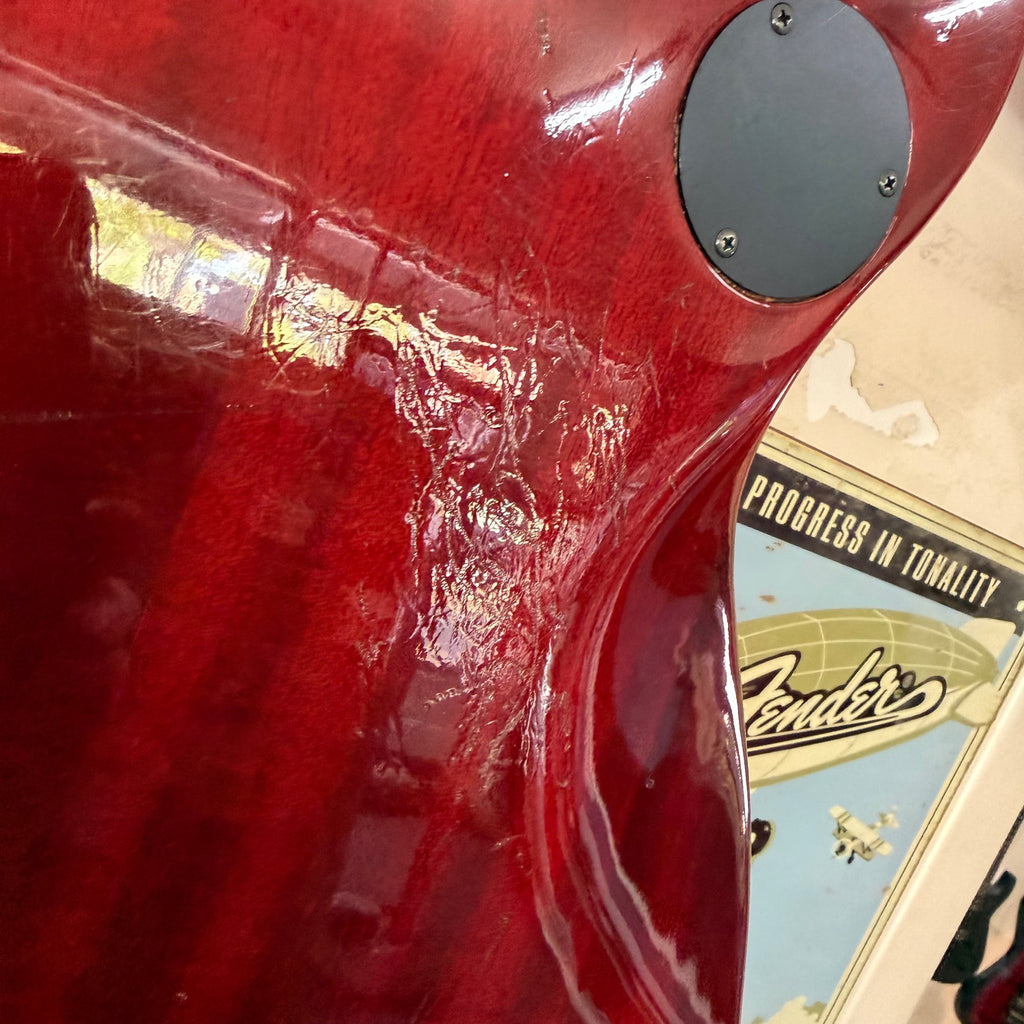 Vintage 1983 Ibanez Artist AR300 in Cherry Sunburst finish. Shows its age with tarnished hardware and general wear consistent with a guitar of this era, but remains in reasonable playing condition. The buckle rash and patina add to its authentic vintage character. A solid mid-range instrument from Ibanez's classic period, ideal for collectors or players seeking vintage tone and character.